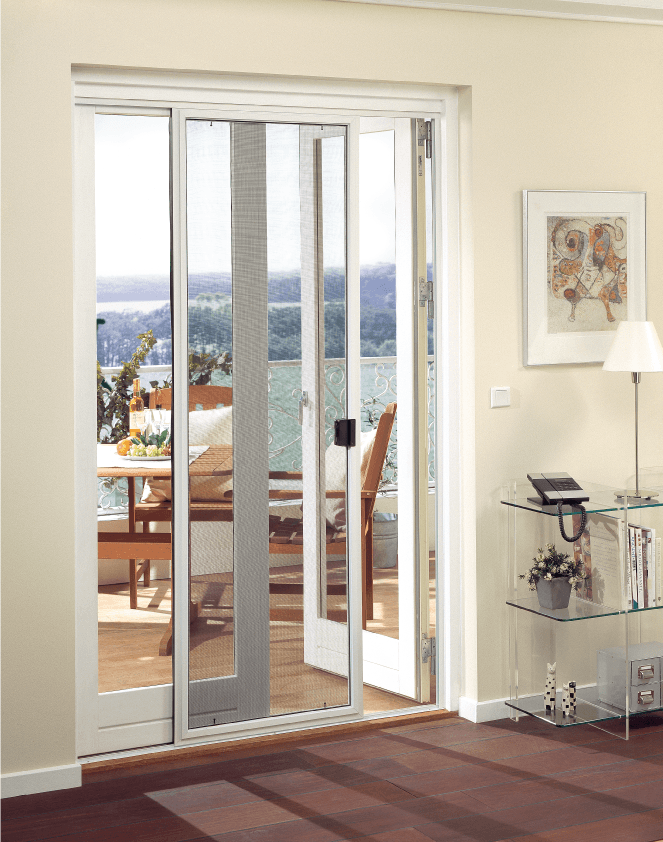 Vores skydedøre med insektnet kan monteres på alle typer skydedøre eller franske døre, og leveres med næsten usynlig sort glasfiber-insektnet. Så kan du få frisk luft ind og holde insekterne ude.